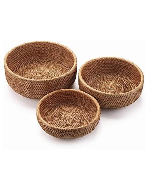 Panier de fruits rond en rotin naturel de luxe paniers de service de stockage tissés à la main organisateur en osier pour salle à manger