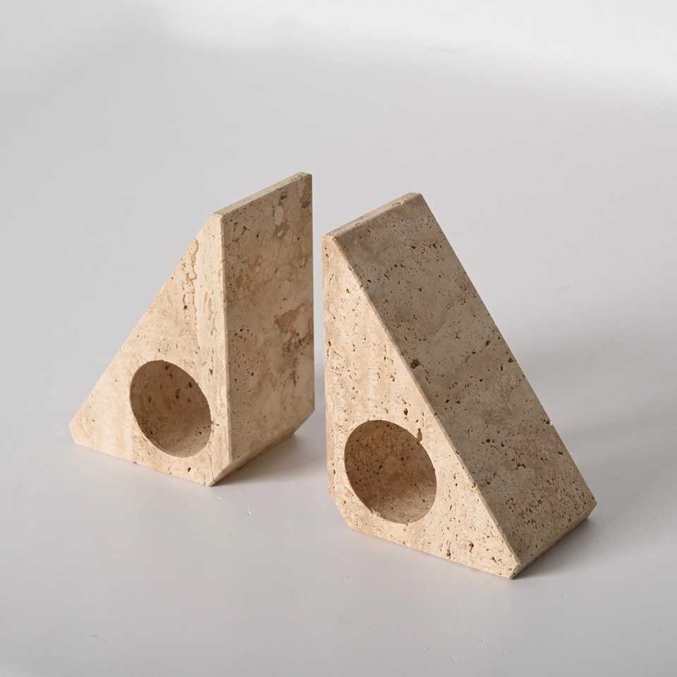 Luxe Pierre Naturelle Triangle Serre-Livres À La Main Marbre Onyx Travertin Décoratif Bureau À Domicile Bibliothèque Organisateur Sculptures