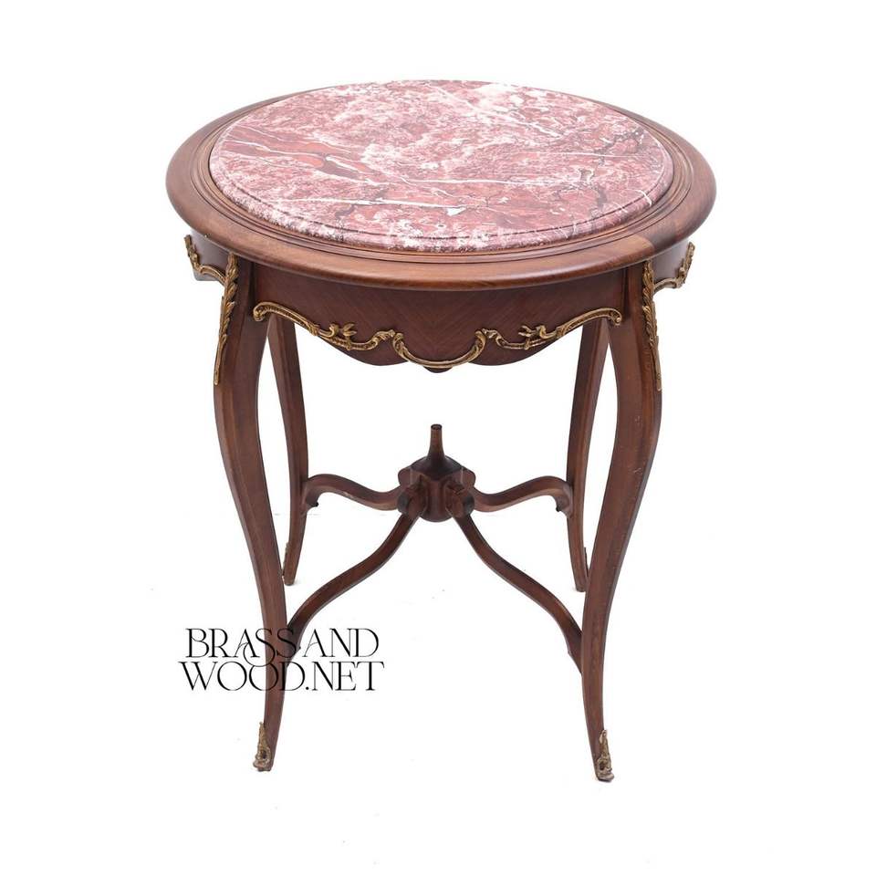 Table d'appoint ronde néoclassique de luxe avec plateau en marbre rose de qualité supérieure et élégants accents en laiton doré pour la décoration intérieure des palais