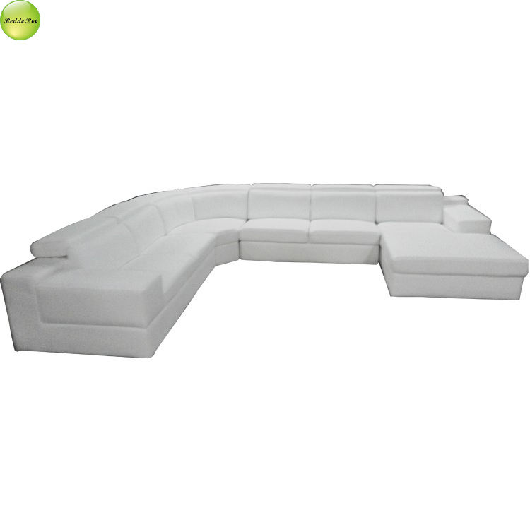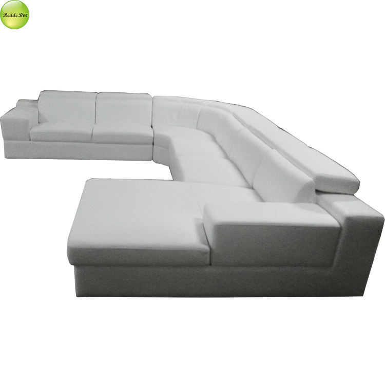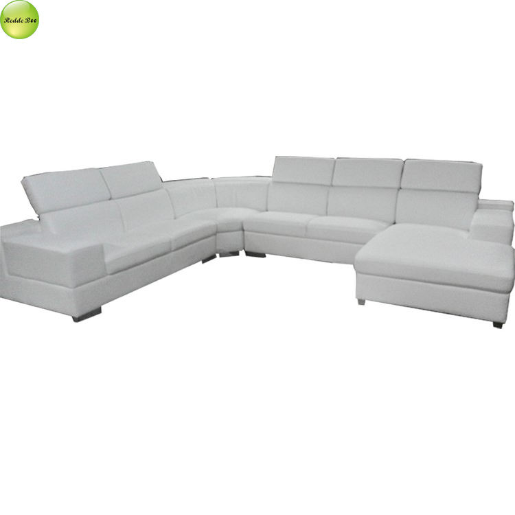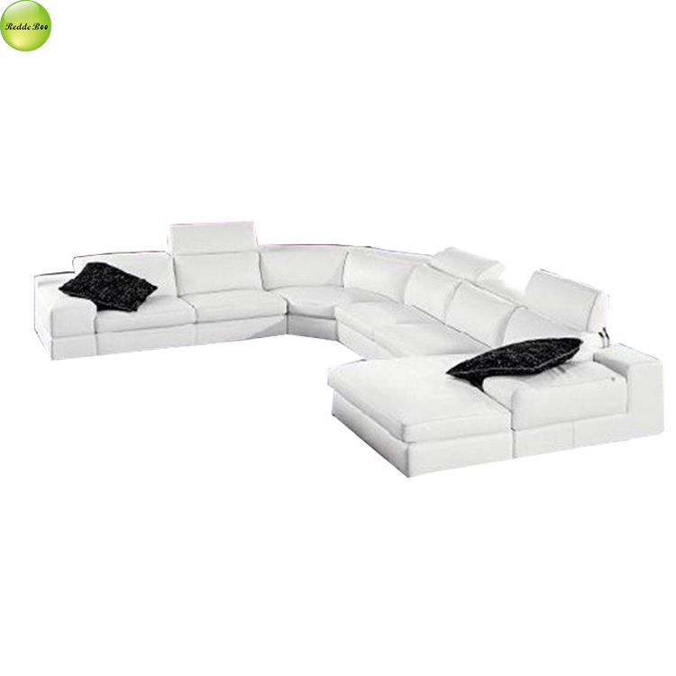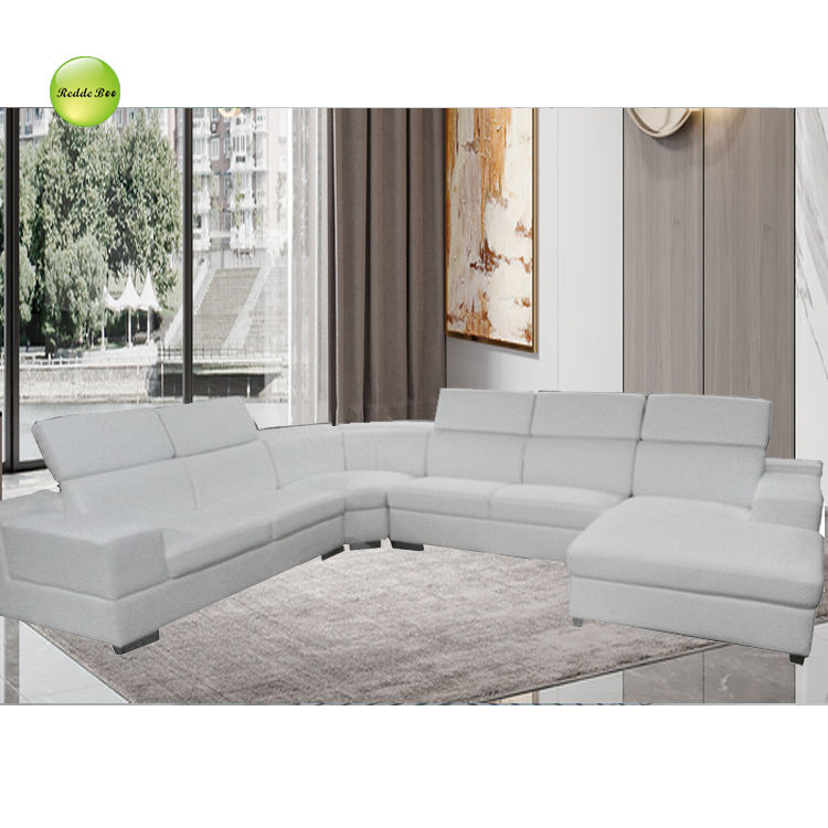 Luxury New Design Adjustable Headrest Upholstered Leather U-shape Sofa Couch with Wooden Frame Living Room Use