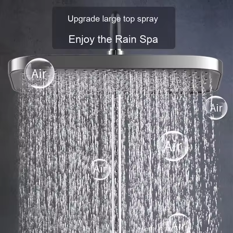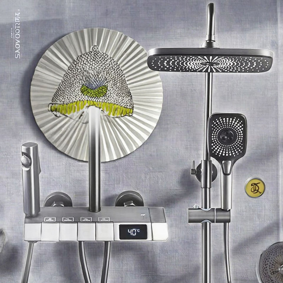 Luxury New White LED Digital Display Waterfall Bath Shower Faucets Brass Wall Mount Hung Piano Faucet Set Ceramic Soft Brushed