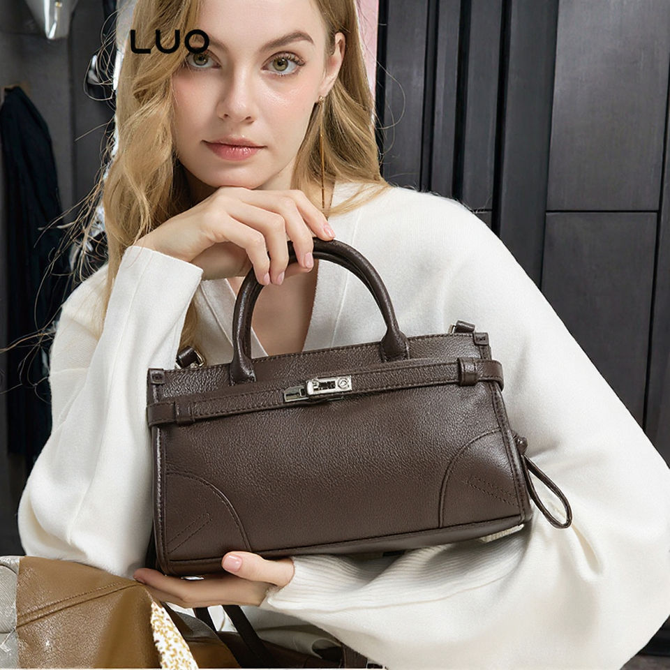 Sac à main de luxe en cuir véritable et coton, grande capacité, imperméable, couleur unie, pour femme, idéal pour le bureau et l'usage quotidien