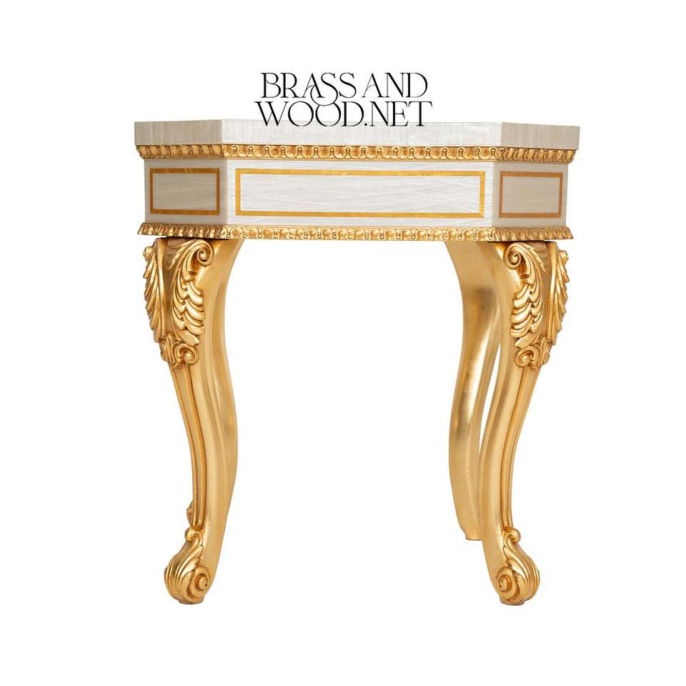 Table d'appoint octogonale de luxe avec art floral peint à la main et pieds sculptés en feuille d'or ornée pour une décoration classique de salon