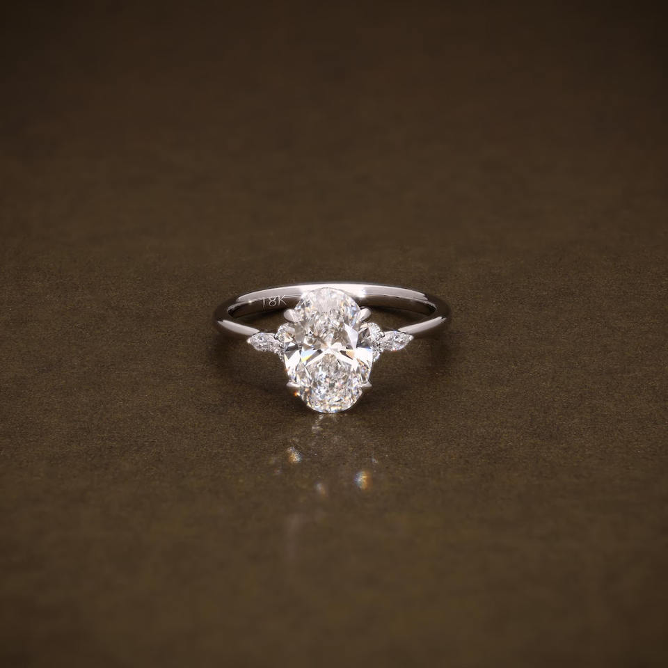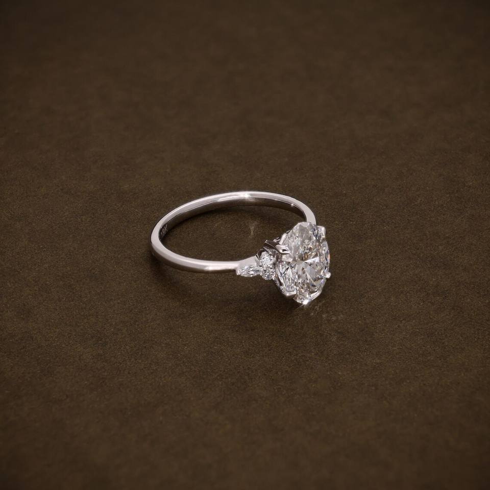 Bague de fiançailles de luxe en diamant de laboratoire taille ovale, certifiée IGI, avec diamants ovales centraux et diamants marquise et ronds sur les côtés