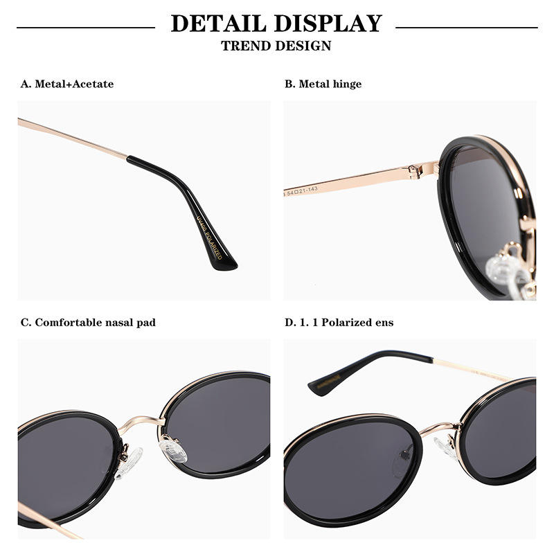 Lunettes de soleil ovales de luxe à petite monture pour femmes, monture en métal TR, polarisées UV400, légères, noires, protection solaire, style voyage