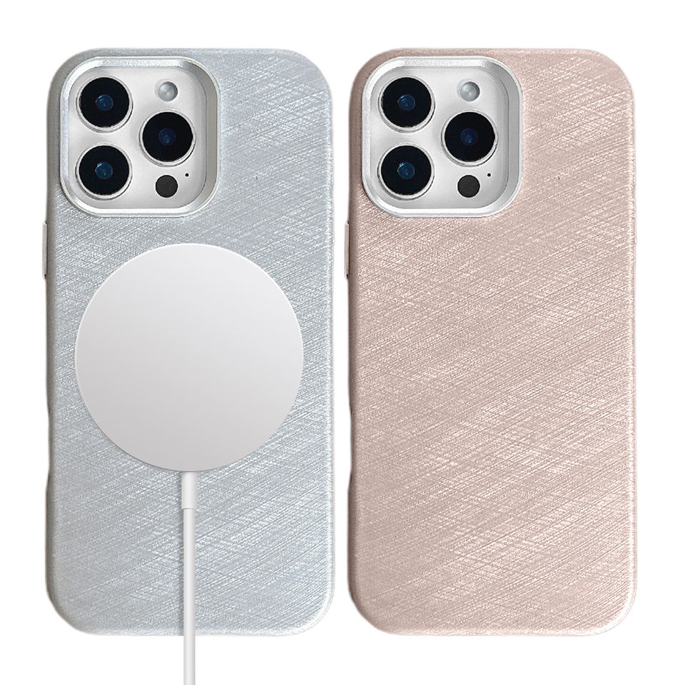 Étui de téléphone en cuir avec tissu en fil d'argent