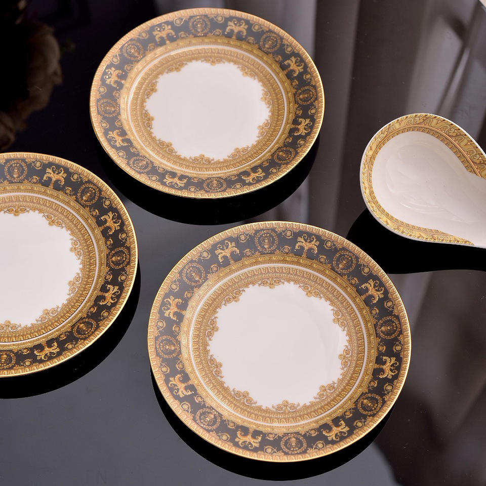 Type de Couvert:Ensembles de vaisselle, Ensembles de vaisselle de luxe en porcelaine fine dorée