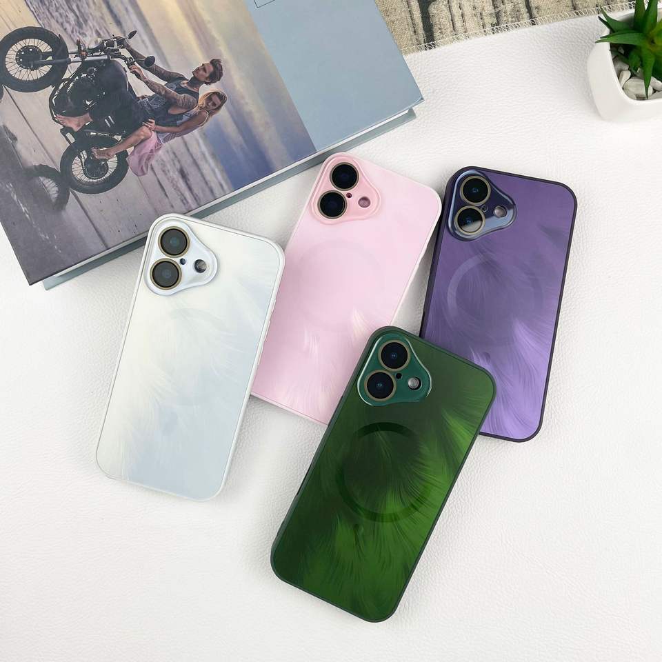 Coque de luxe Phoenix Tail Texture AG pour iPhone 16/16 Pro Mac coque arrière givrée mate avec protecteur d'objectif de caméra en verre