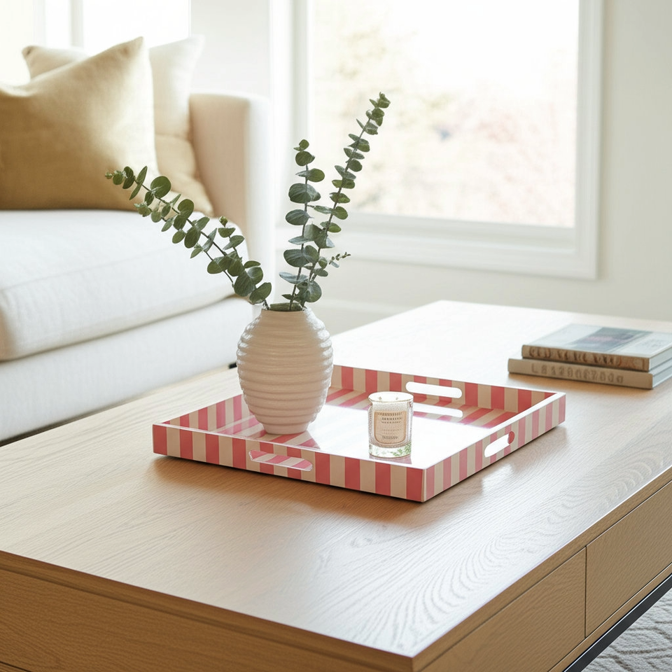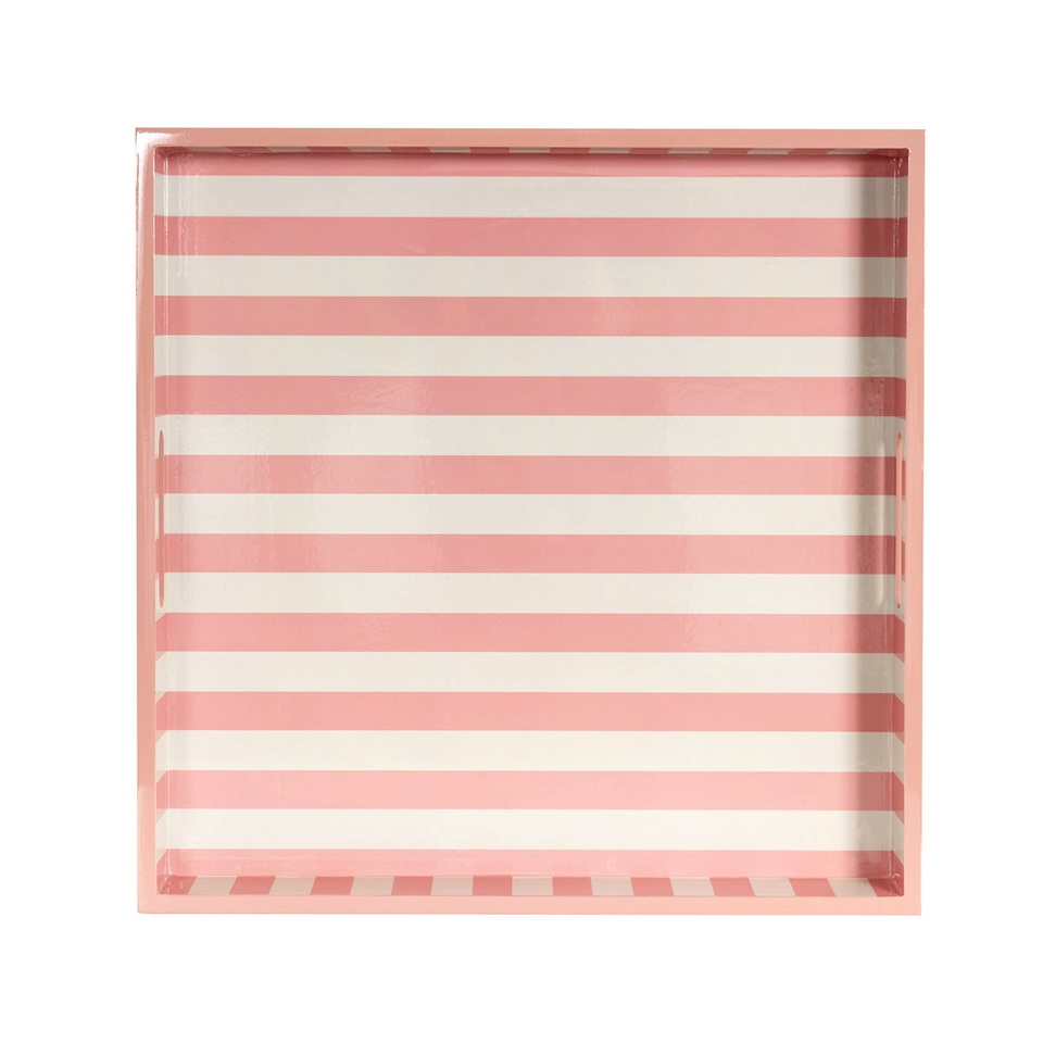 Luxury Pink and White Striped Lacquer Serving Tray Modern Decorative Coffee Table Tray for Home Kitchen Dining Living Room