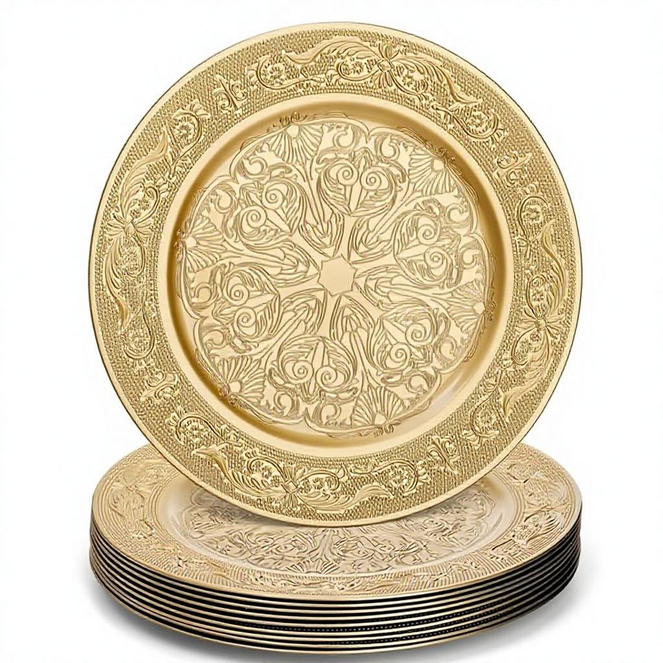 Assiette de Présentation de Luxe en Acier Inoxydable Écologique, Durable et Moderne, Vaisselle Décorative pour Mariages, Banquets et Événements