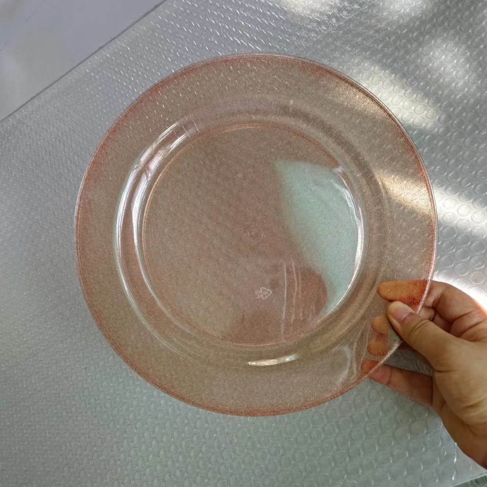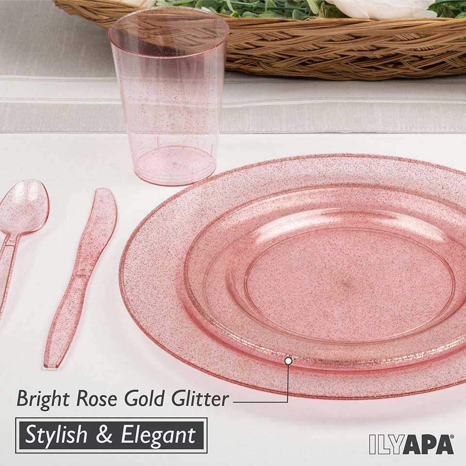 Assiettes de luxe ensembles de vaisselle jetables pas cher Rose or paillettes mariage en plastique transparent assiettes de fête
