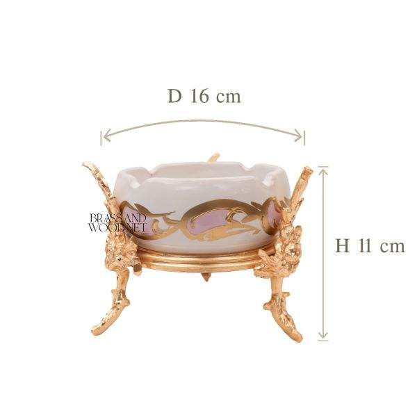 Cendrier de luxe en porcelaine avec support orné en laiton massif