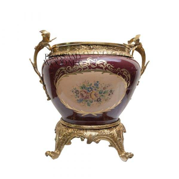 Luxury Porcelain Plant Pot With Antique Gold Plated Brass Decorative Planter
