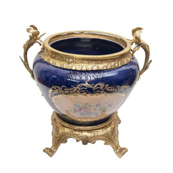 Luxury Porcelain Plant Pot With Antique Gold Plated Brass Classic Decorative Planter