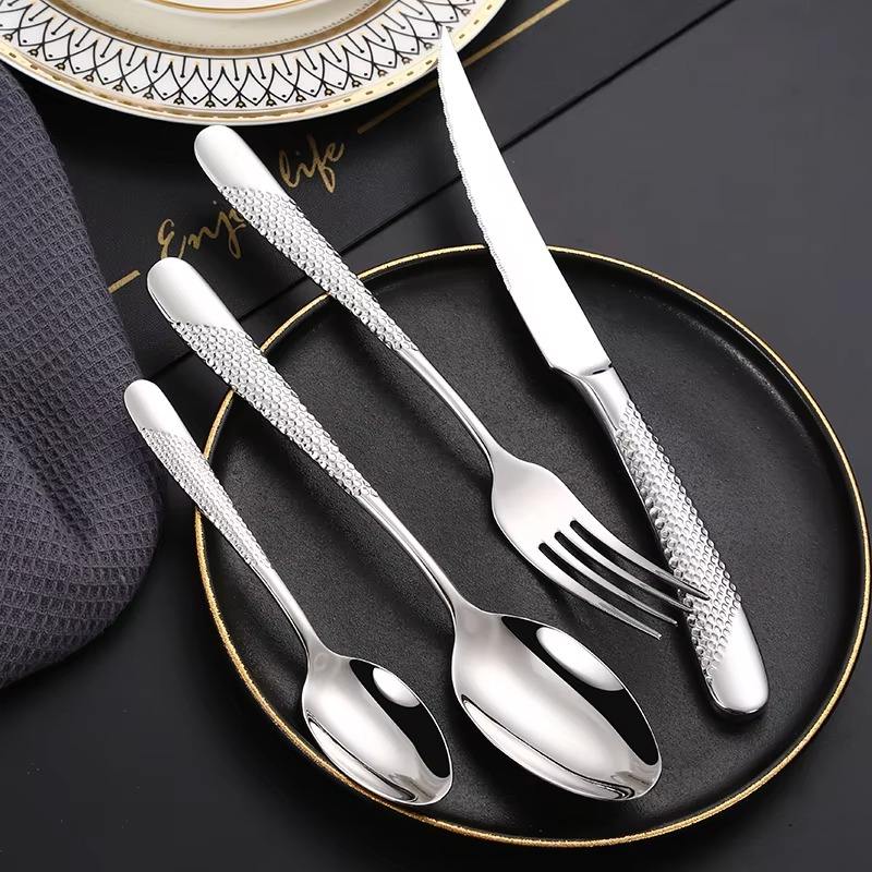 Ensemble de couverts de luxe haut de gamme finition argentée avec des détails minimaux en or pour les dîners en famille et les événements festifs