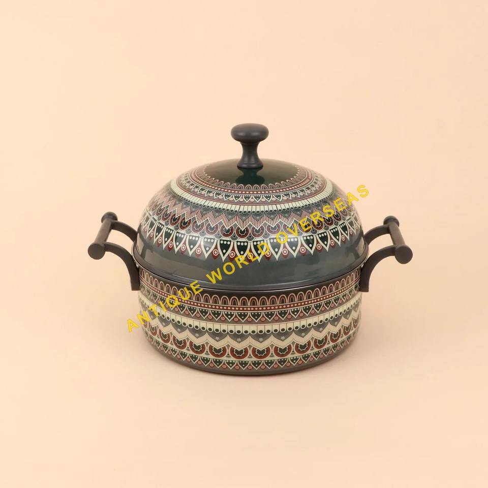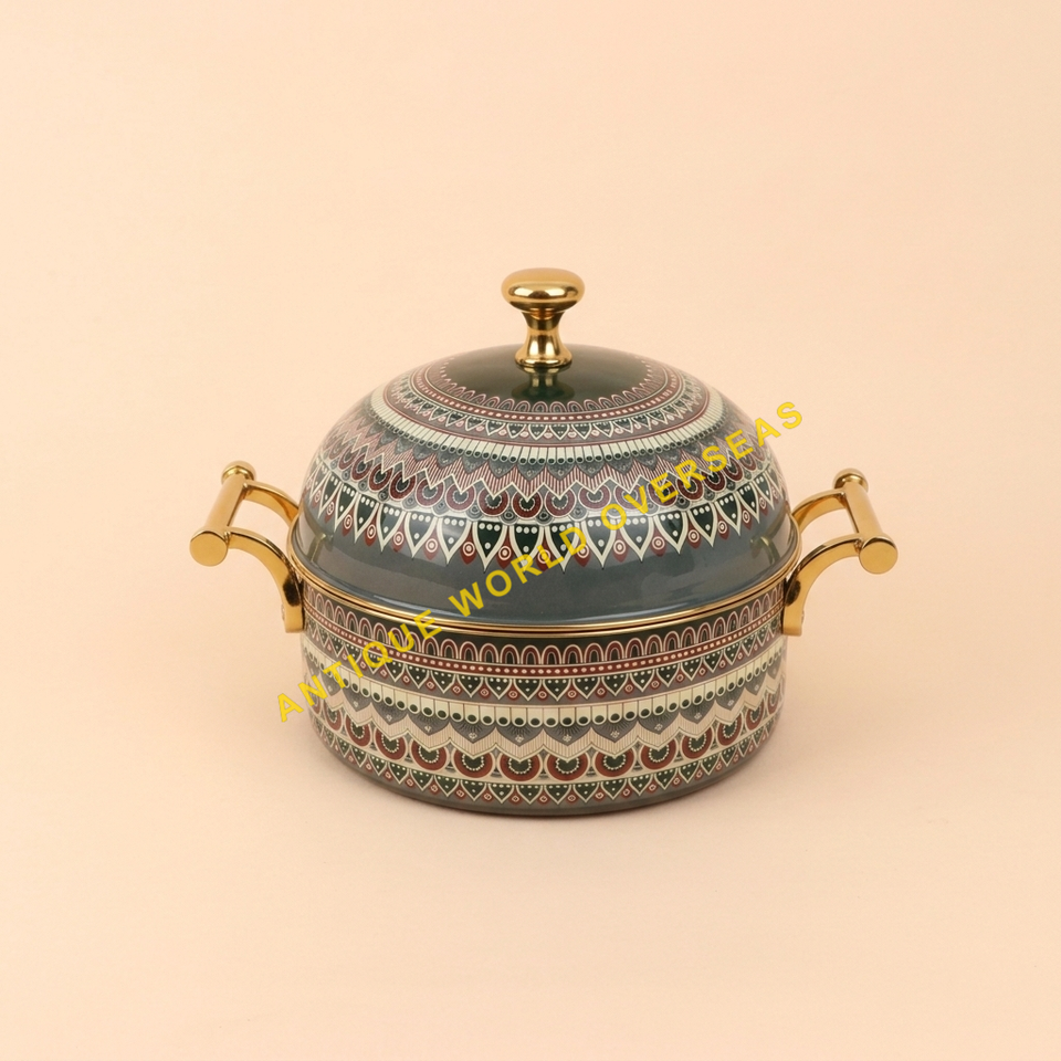 Casserole de luxe haut de gamme à motif géométrique, isolée, antiadhésive, en acier inoxydable, 28 cm, durable, avec couvercle, chauffe-plat thermique