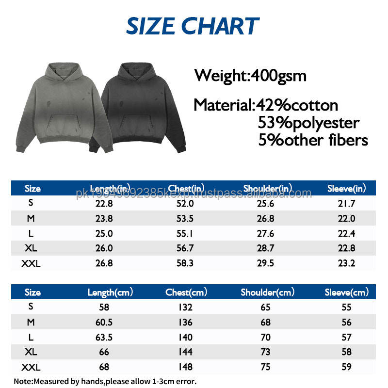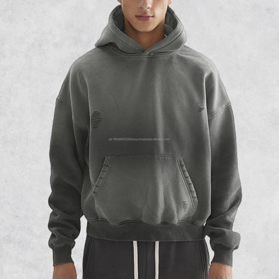 Luxury Quality 400GSM Men's Hooded Hoodies Monkey Wash Streetwear Fleece Ripped Distressed Drop Shoulder Cropped Hoodies