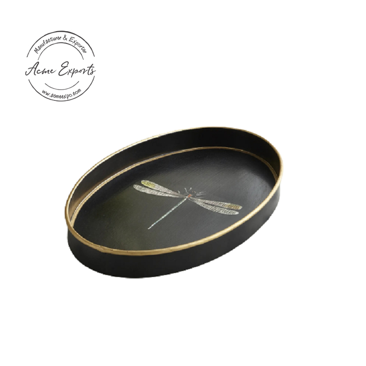 Grand plateau métallique rectangulaire de qualité de luxe, fabriqué à la main avec finition dorée, utilisé pour le service et la Table de Restaurant d'hôtel