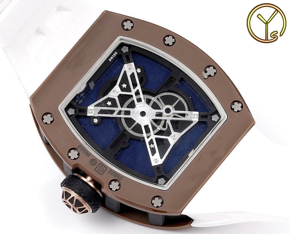 Qualité de luxe YS Usine Tourbillon Mouvement RM52-05 Bracelet Blanc Marron Céramique Squelette Astronaute Montre Mécanique