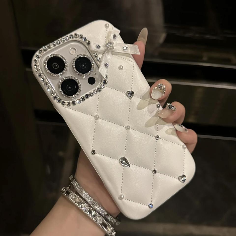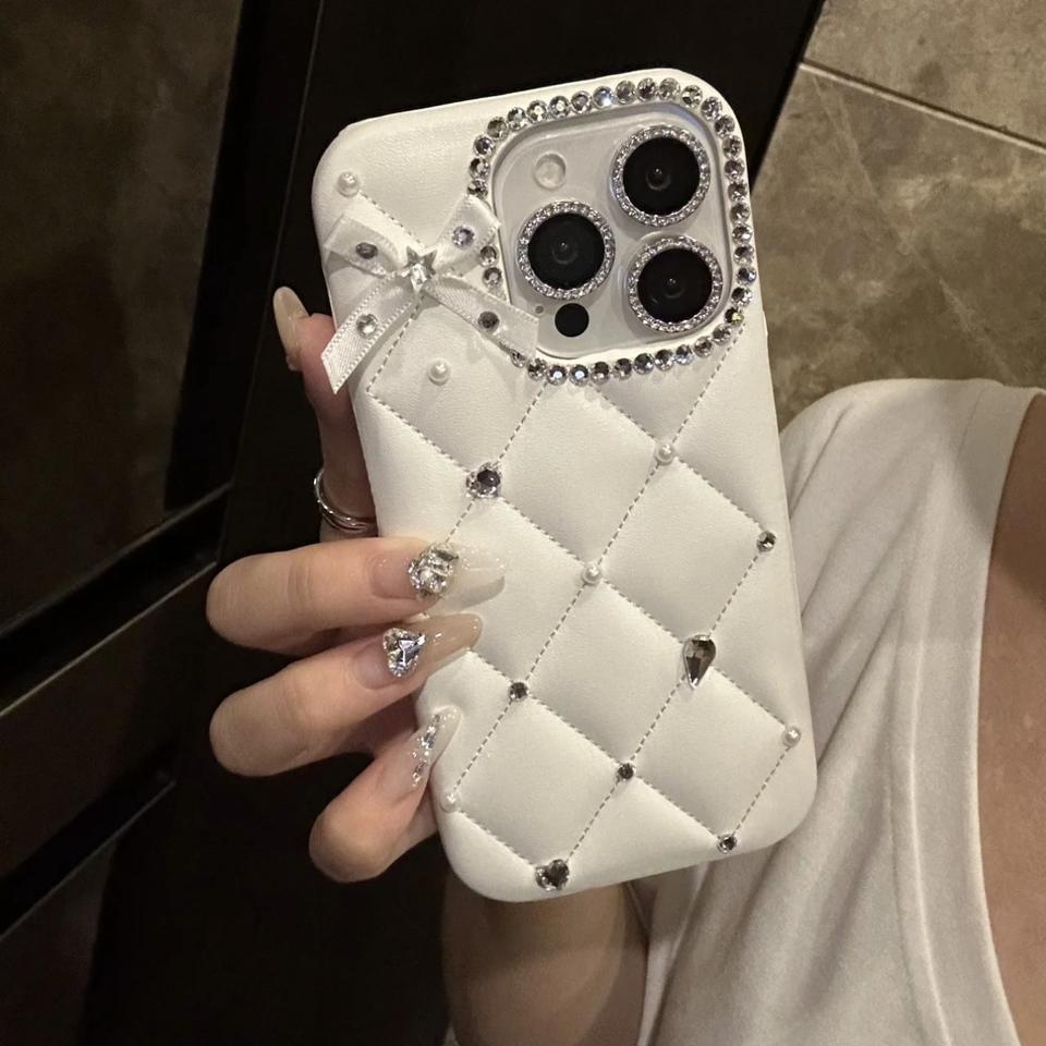 Product name:White Quilted Pearl Bow Phone Case