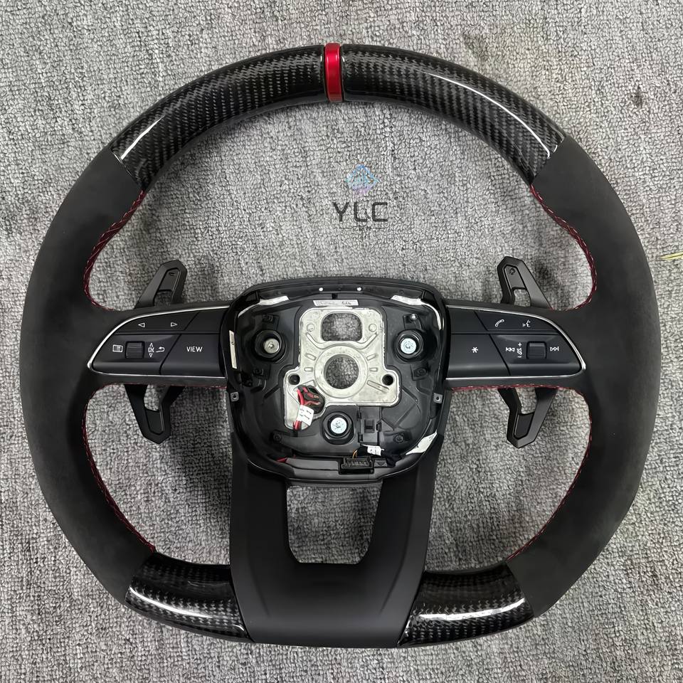 Volant de course de luxe en fibre de carbone avec surpiqûres rouges en cuir, style sportif et luxueux pour Audi TT TTS TTRS R8 V8 V10 A6 A3 A5