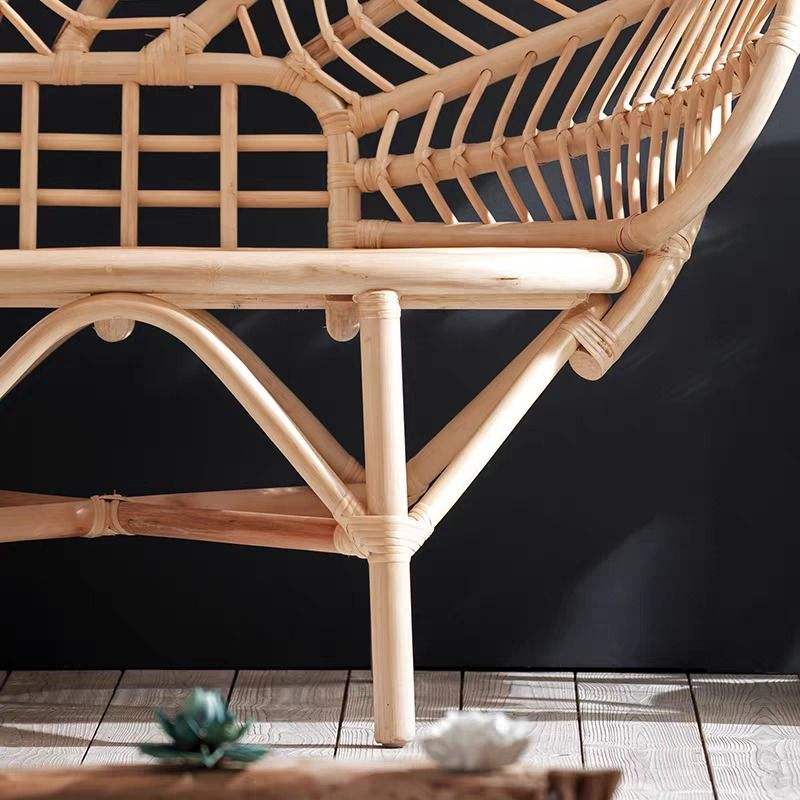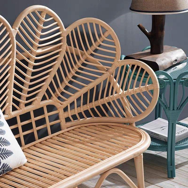 Canapé en rotin artisanal en forme de feuille, banc tissé naturel pour une utilisation en intérieur et en extérieur
