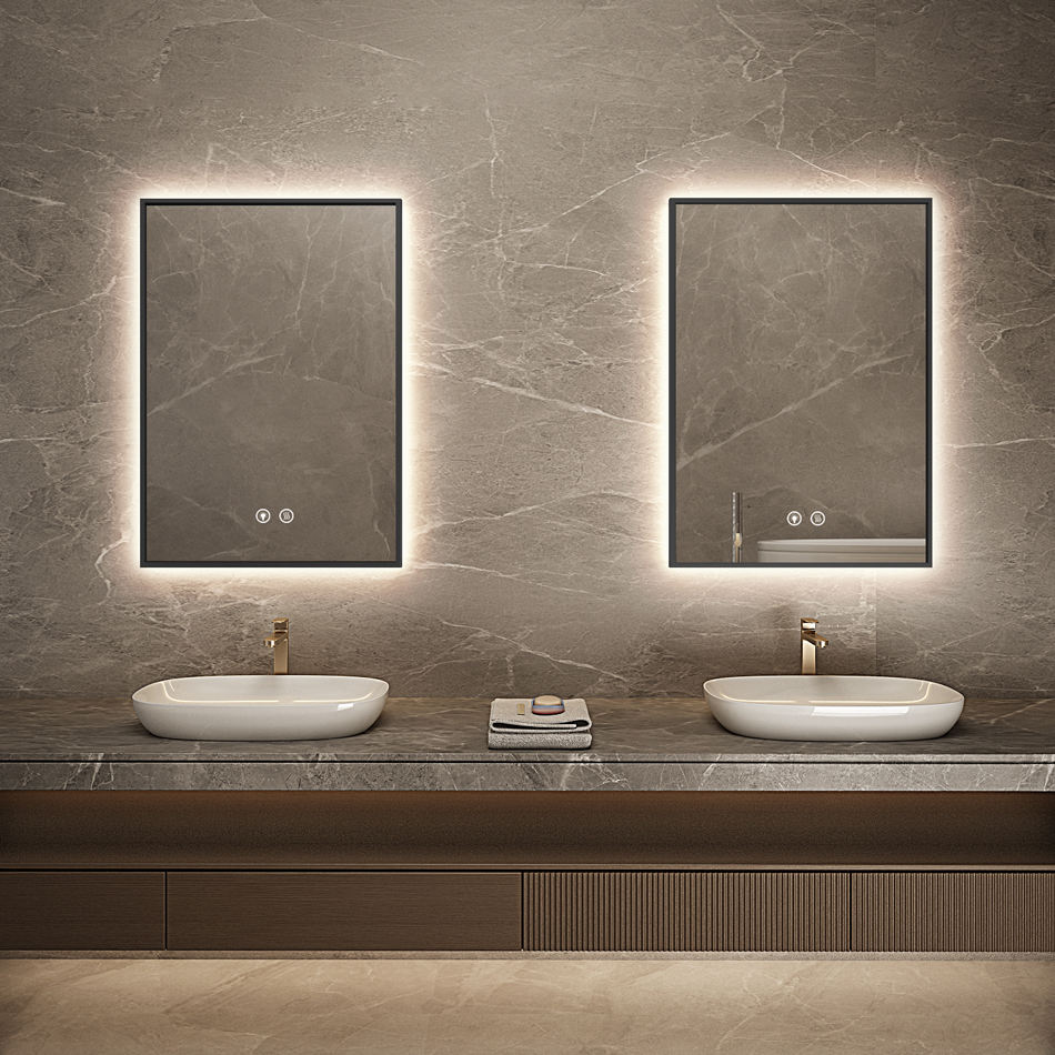 Miroir de courtoisie à DEL rectangulaire de luxe à cadre noir avec rétroéclairage et miroir tactile à intensité variable