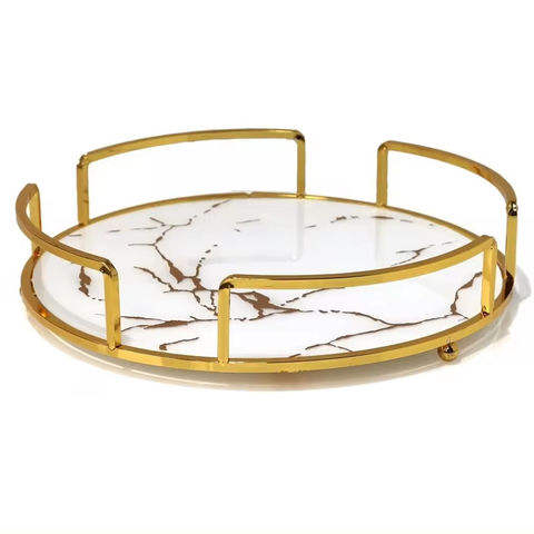 Plateau de service rectangulaire de luxe en marbre avec poignées dorées, couleur personnalisable et design européen léger pour les célébrations de Diwali