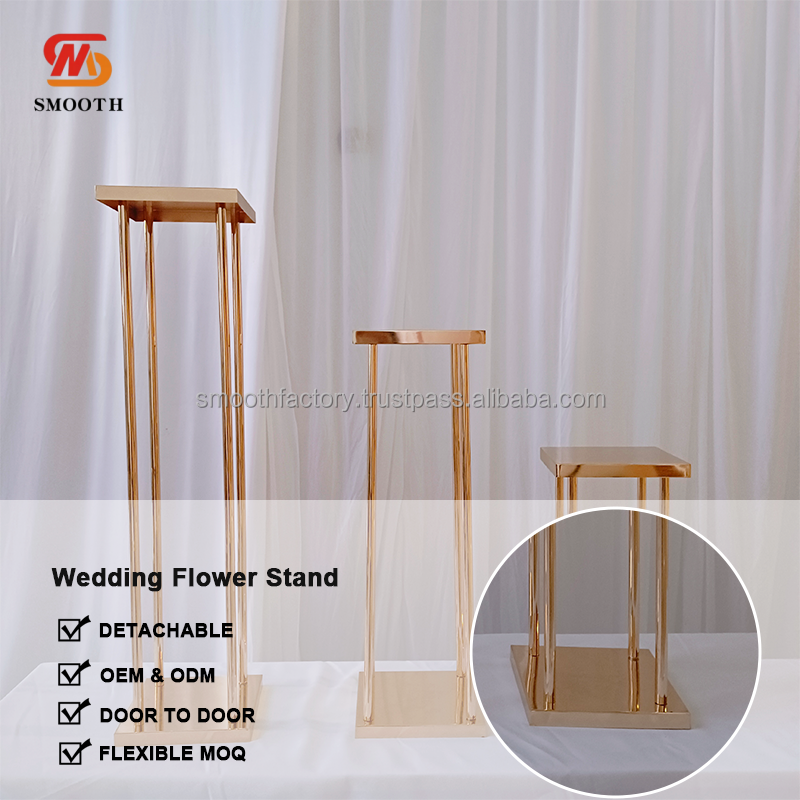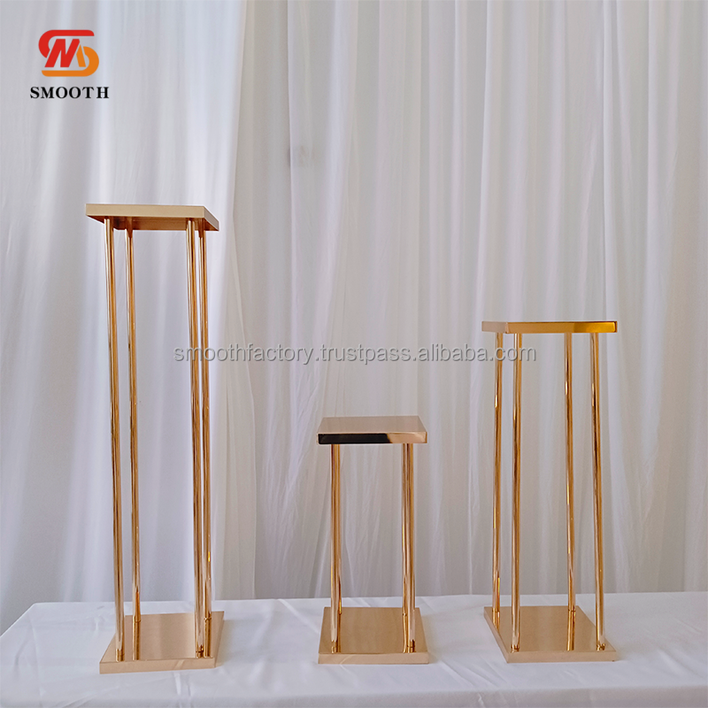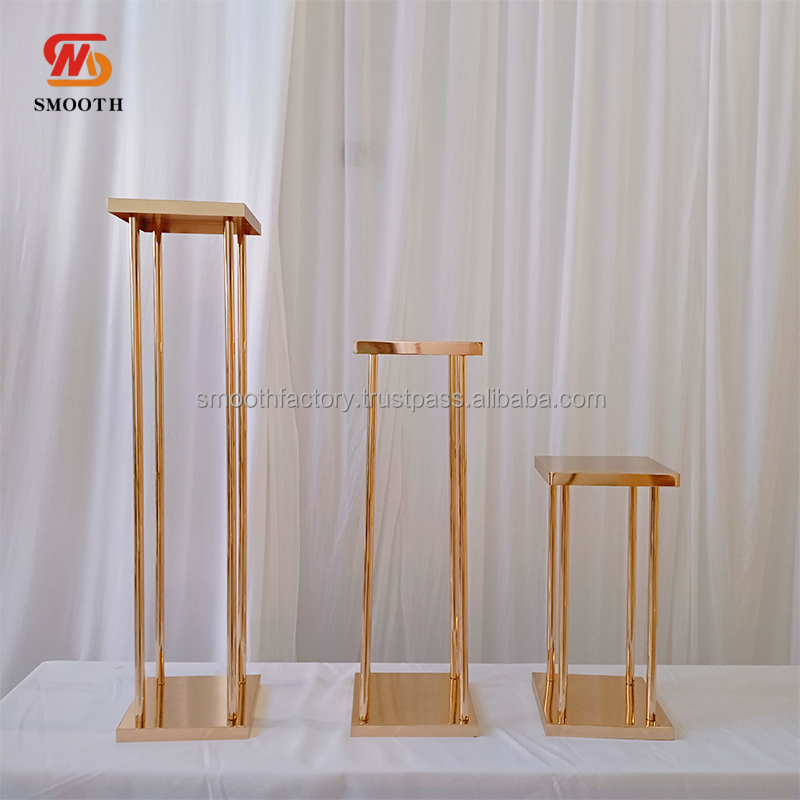 Support à fleurs rectangulaire de luxe en acier inoxydable doré, support d'exposition de haute qualité, support à fleurs pour décoration d'événements, élégant et lisse