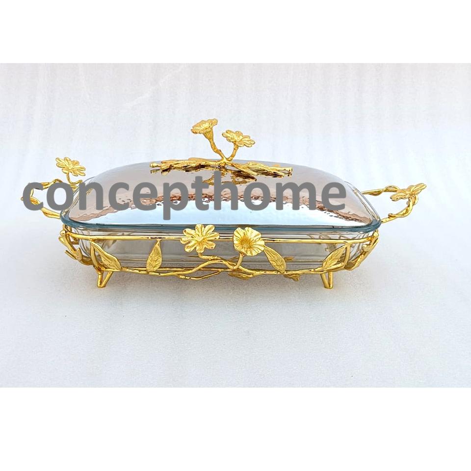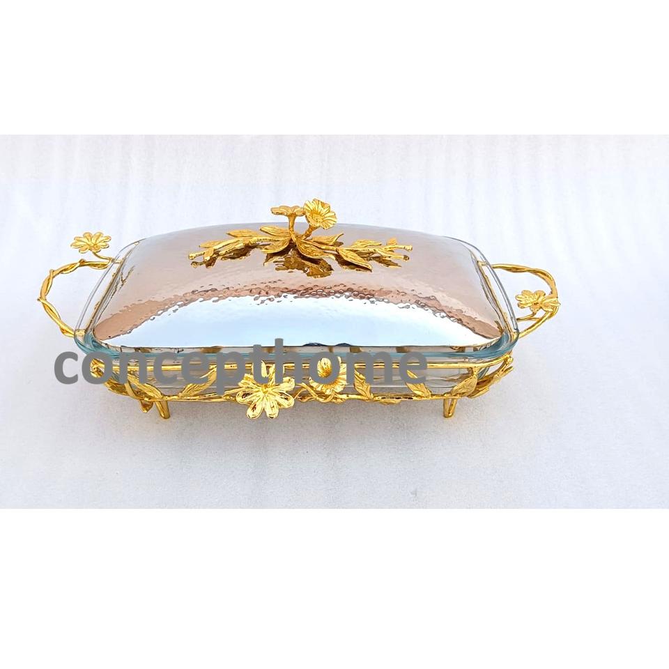 Plat de service rectangulaire de luxe en acier inoxydable avec couvercle plaqué or, fait main, pour mariage, traiteur, fête, logo Inde, 100 pièces