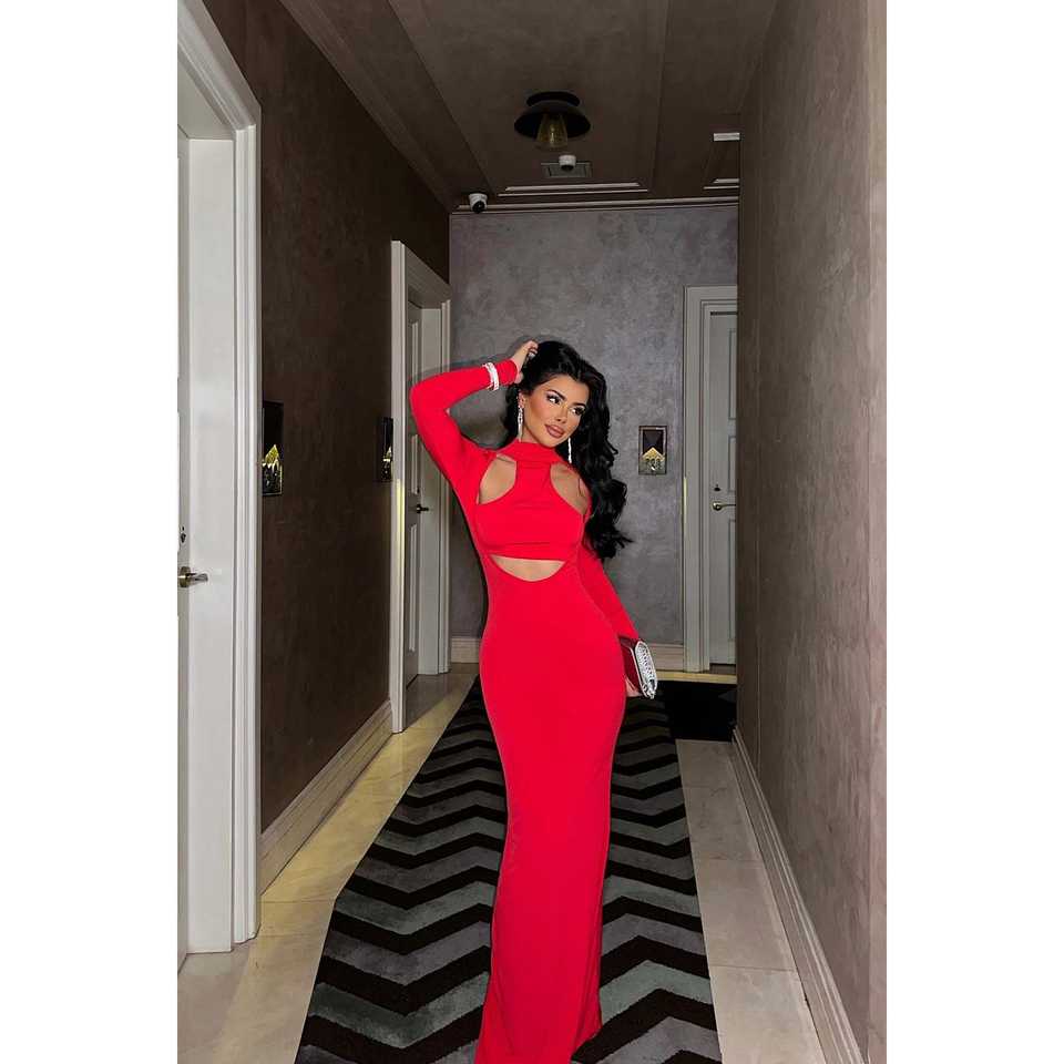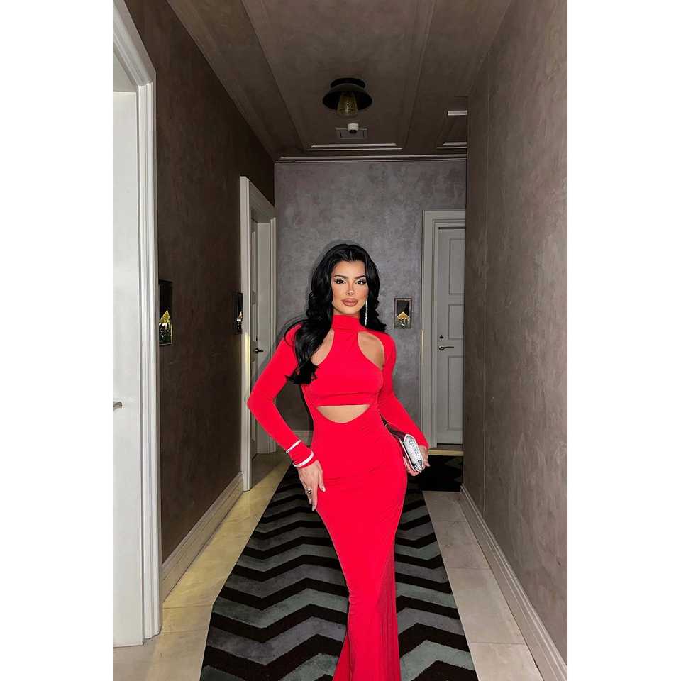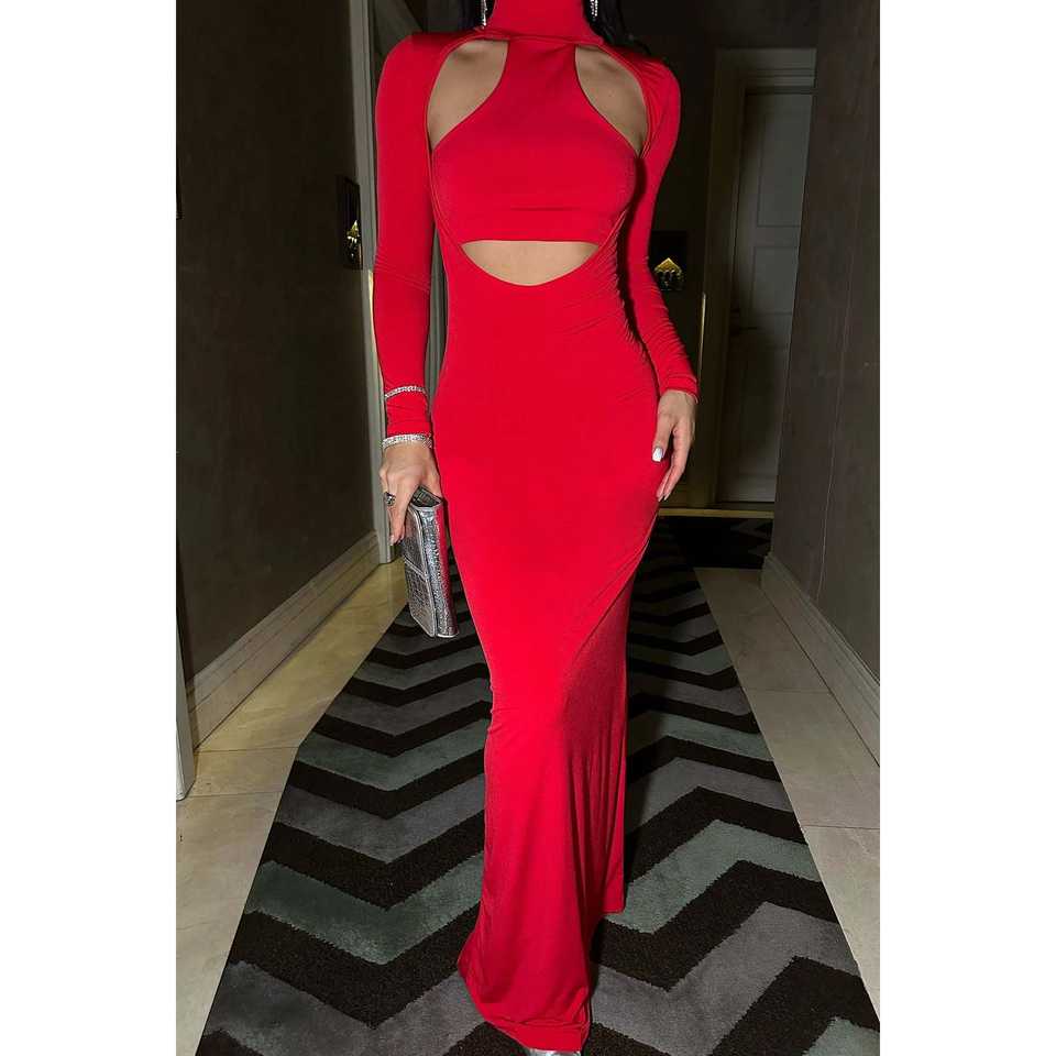 Robe de bal de luxe rouge avec détail fenêtre de style Paris, ornée de sequins et de perles, style droit simple, taille empire, longueur genou, pour soirée et fête