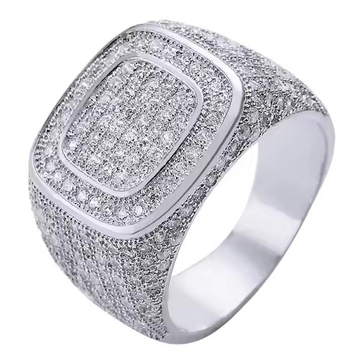 Bague Moissanite de réglage de lunette glacée de style religieux de luxe pour les occasions de mariage ou de fête Streetwear en Inde