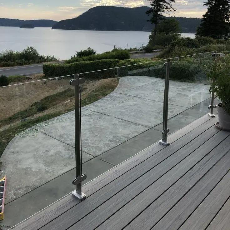 Monté, Garde-corps en verre, Sans cadre, Tube, Garde-corps en acier inoxydable, Réglable, Balustrade de tuyau
