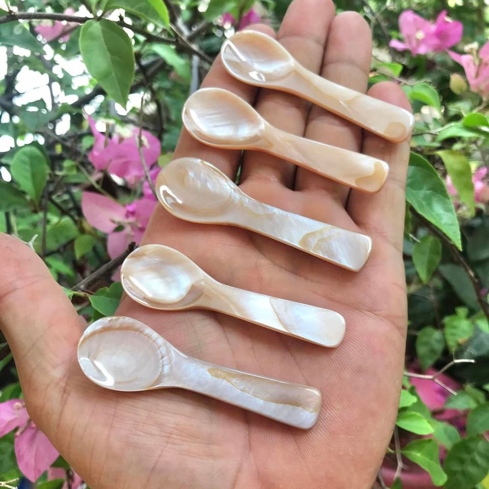 Luxury Restaurant Hotel Dinner Mother of Pearl Spoon Shell Caviar Spoon Handmade Vietnam Helps Keep the Full Flavor of Caviar