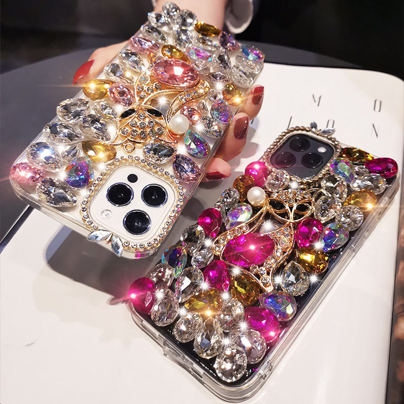 Luxe strass étui coque de téléphone pour iPhone 15 Pro Max paillettes femmes fille Bling diamant couverture de téléphone pour Samsung Note20 A73 A54