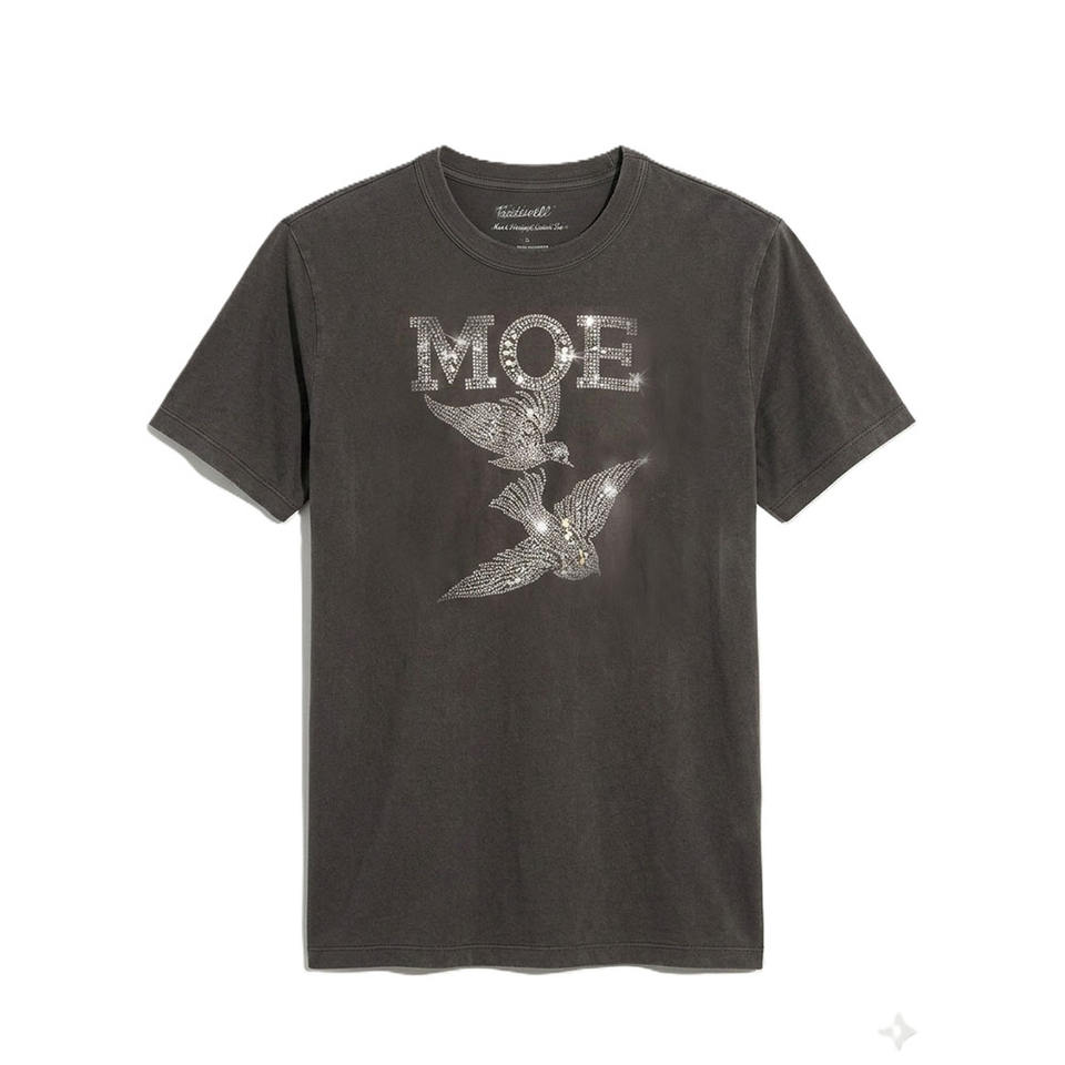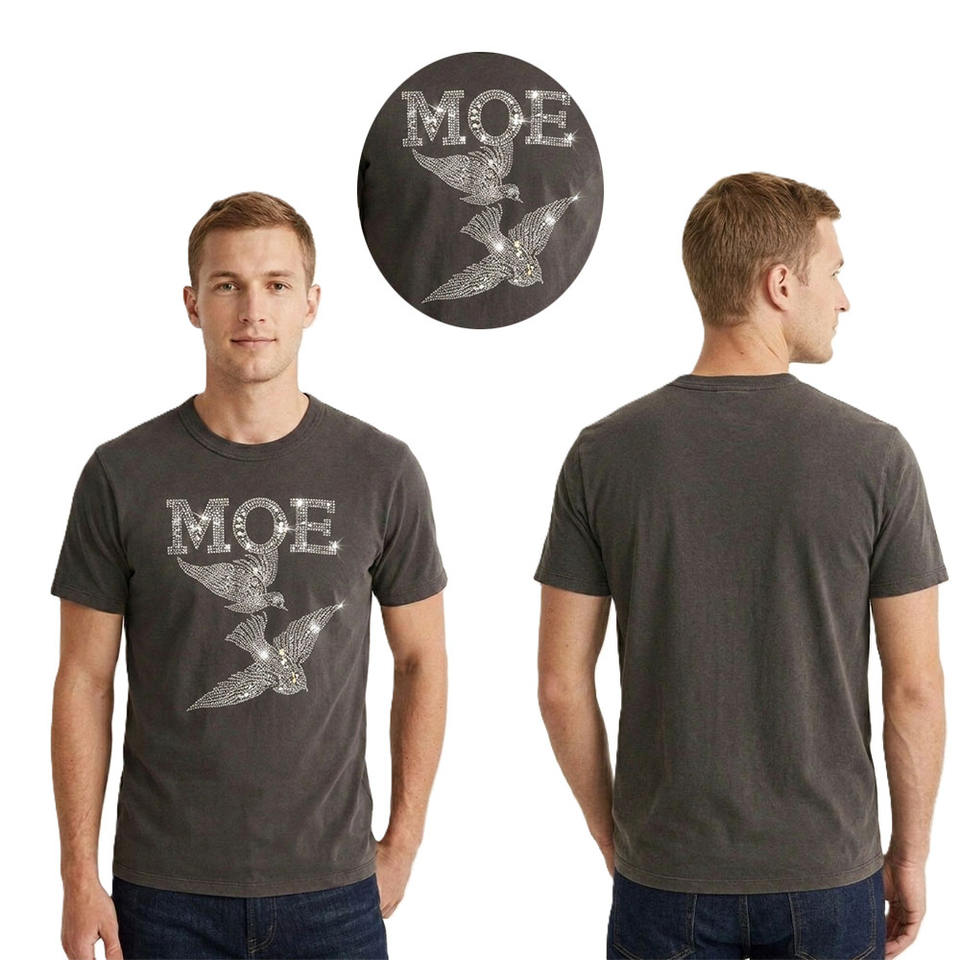 T-shirt de luxe pour homme avec logo personnalisé en strass, 100 % coton épais, motif oiseau en cristal, vente en gros OEM