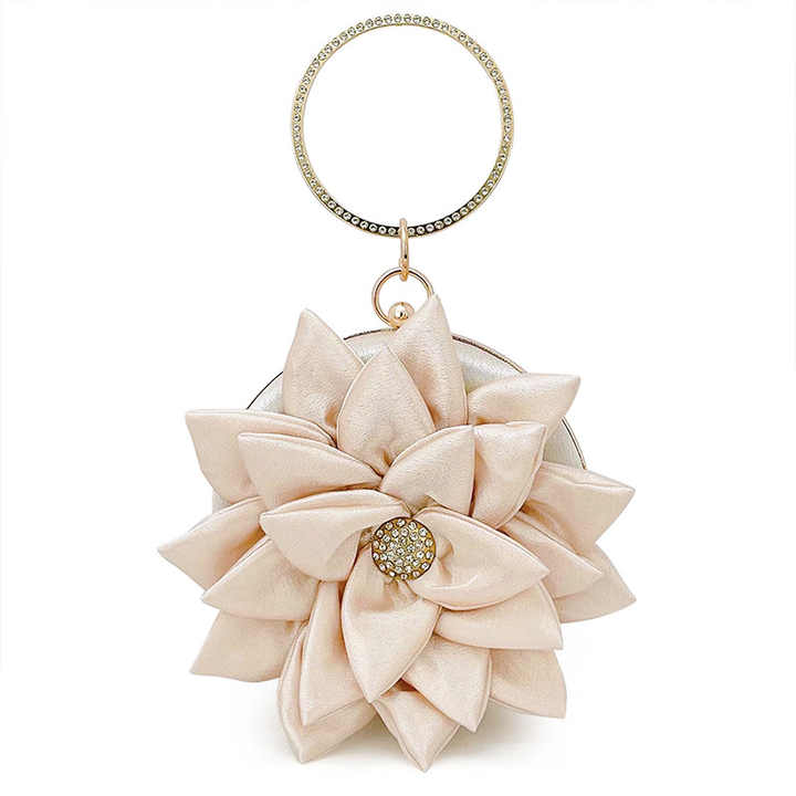 Pochette de soirée de luxe en strass pour mariage, sac à main tendance avec poignée ronde en métal et fleur, sac de soirée en satin pour femme
