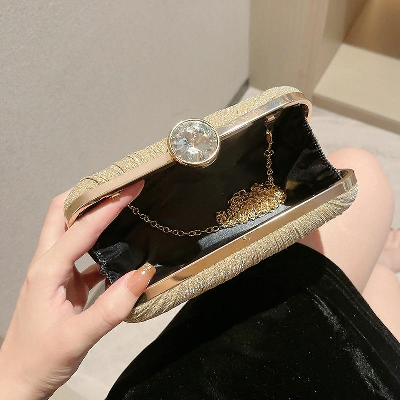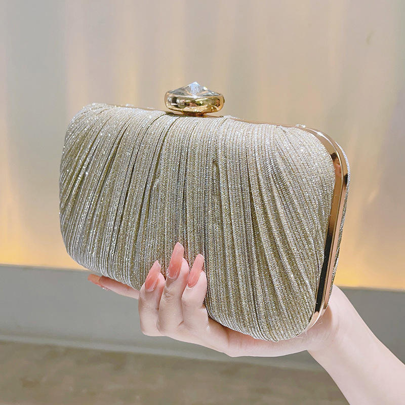 Pochette de soirée de luxe en strass et paillettes pour femme, sac de forme carrée, motif uni, plissé, pour mariage et soirées