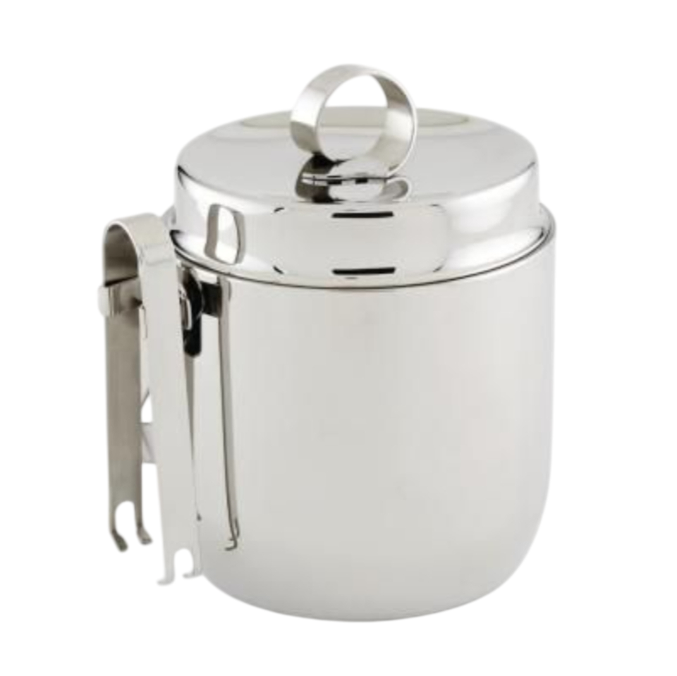 Seau à glace de luxe en acier inoxydable côtelé avec couvercle et poignée, finition nickel poli, double paroi isolée, refroidisseur à champagne et vin