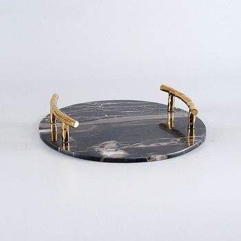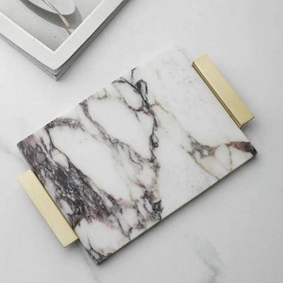 Assiette de table ronde de luxe en céramique et porcelaine avec poignée en métal doré, motif végétal, écologique, spécial Saint-Valentin, MOQ 20 pièces