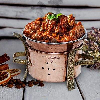Plat à chafing rond de luxe en cuivre avec design décoratif et poignées en laiton pour la restauration de mariage, les restaurants, les buffets d'hôtel