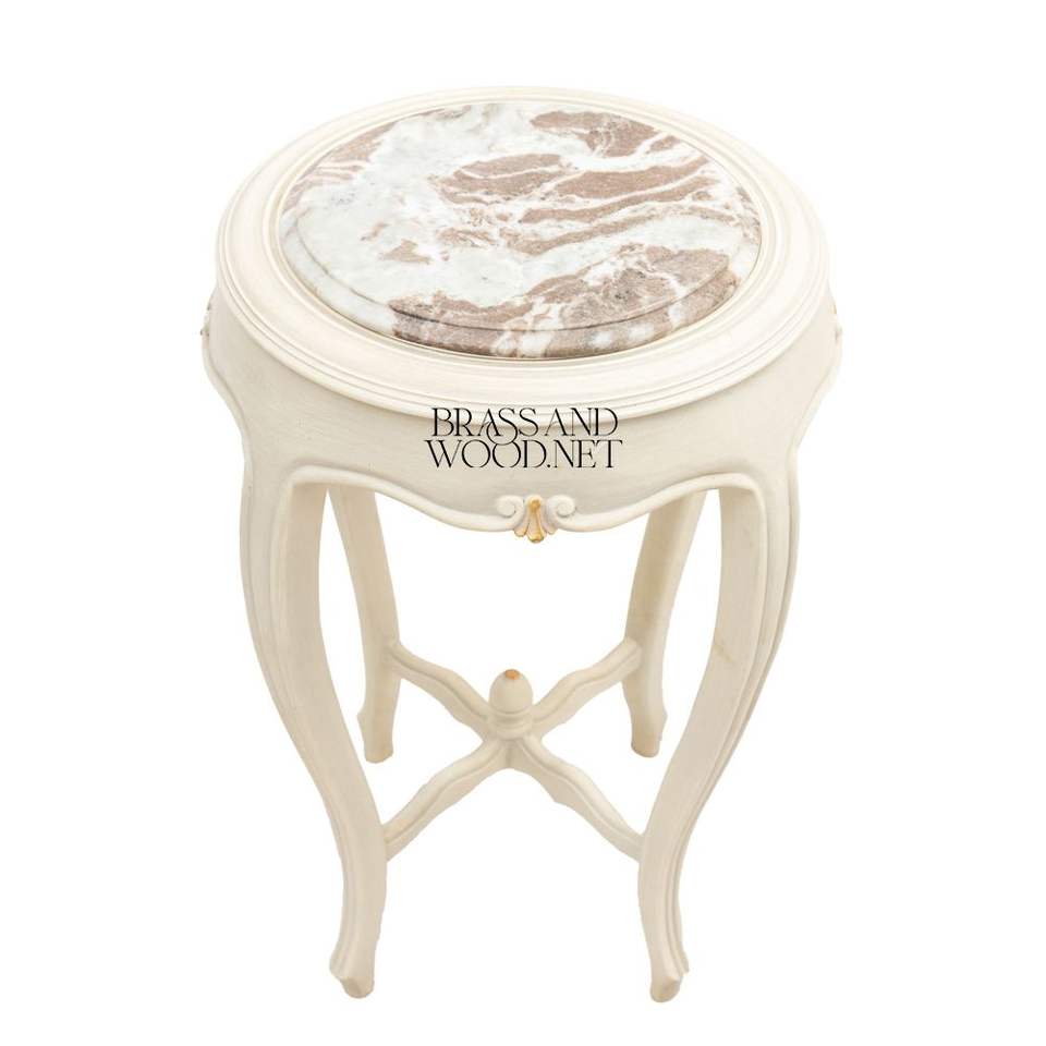 Table d'appoint ronde de luxe avec plateau en marbre haut de gamme et pieds élégants de style cabriole pour la décoration classique du salon