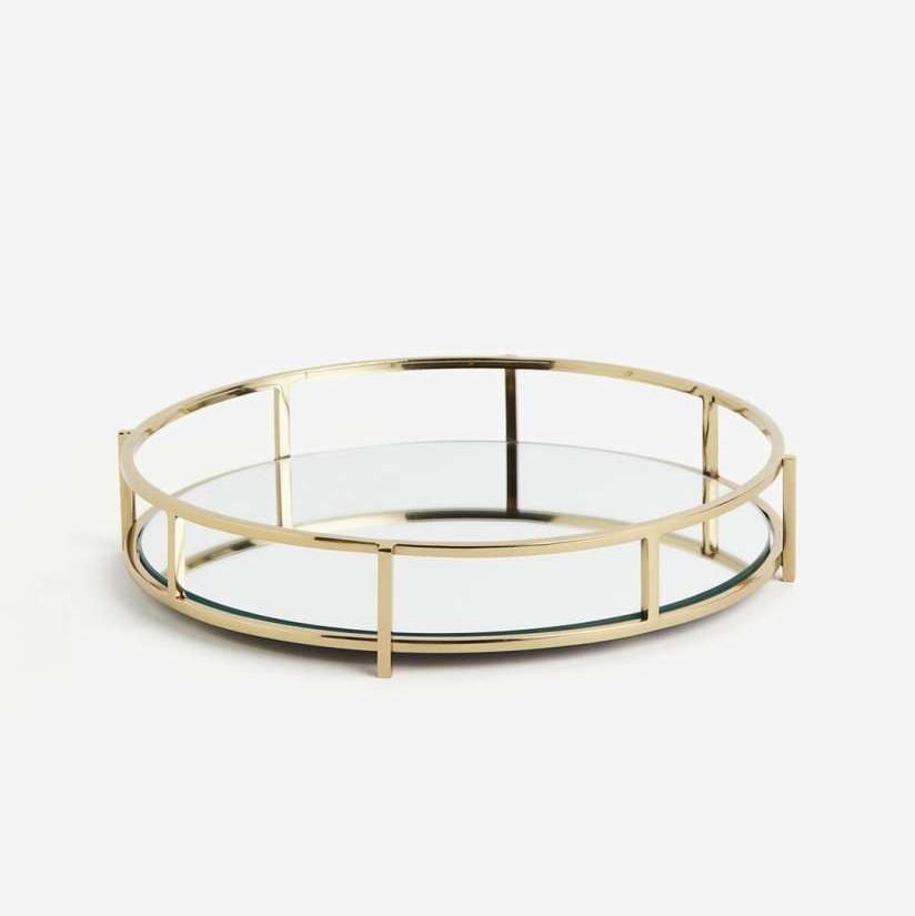 Plateau de service rond en or de luxe pour le parfum, le maquillage et l'organisation des bijoux, vaisselle décorative élégante pour hôtel et mariage