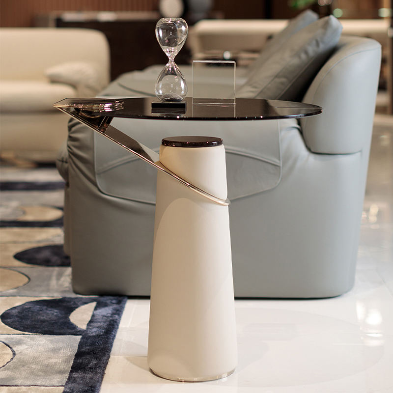 Table d'appoint de luxe avec plateau en verre trempé rond, meubles personnalisés pour la maison, table à café ou à thé moderne