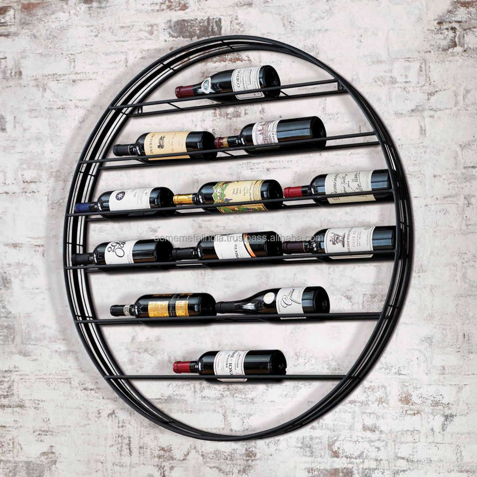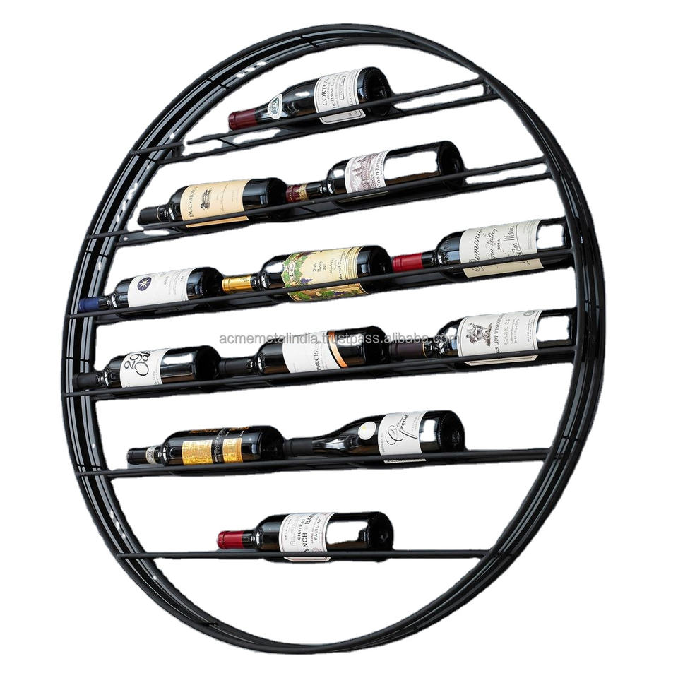 Porte-bouteilles mural rond de luxe en métal noir au design moderne, parfait pour l'exposition élégante de bouteilles de vin
