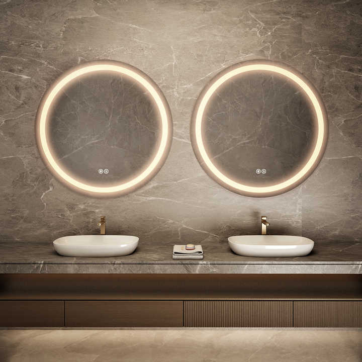 Luxury Sandblasted Edge Frameless Round Mirror LED Bathroom Vanity with Anti-Fog Feature