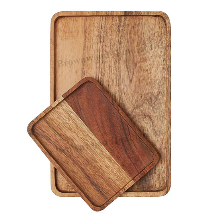 Lot de 2 plateaux rectangulaires en bois de manguier incrusté de blanc de luxe plateaux de service élégants pour hôtels, restaurants et cuisine domestique