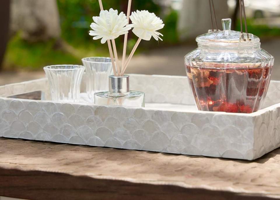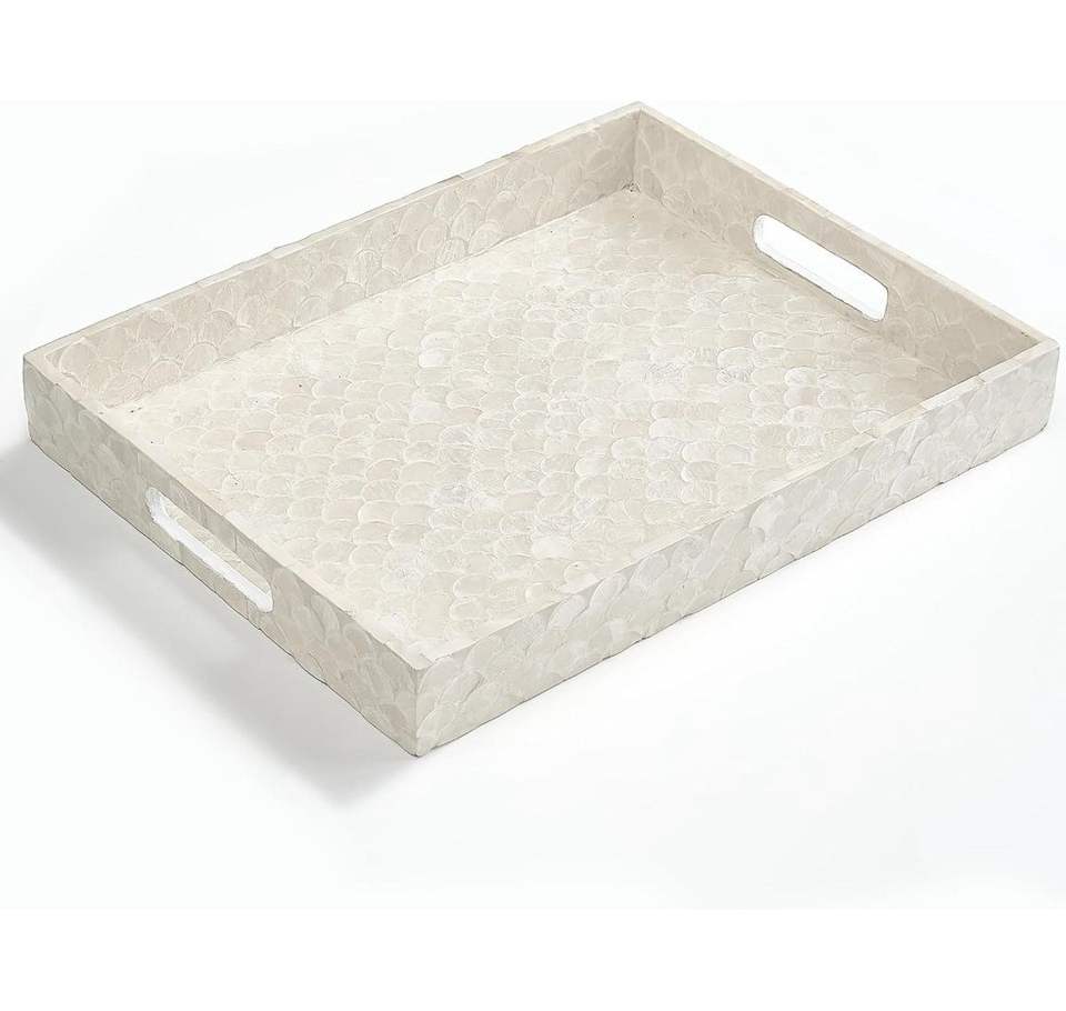 Plateau décoratif de luxe avec incrustations de coquillages