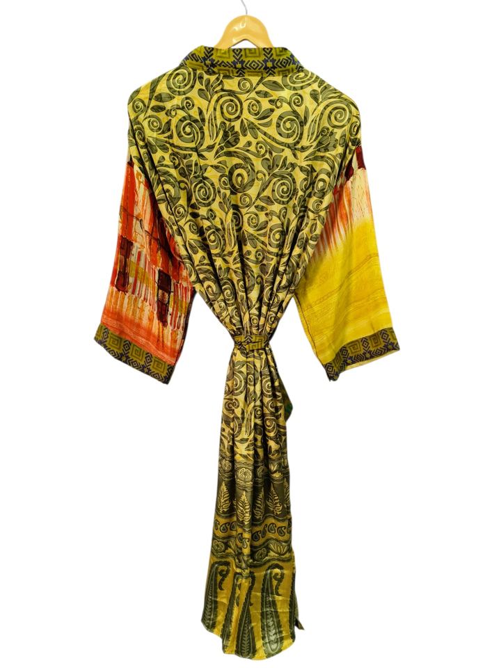Robe de luxe en soie patchwork Kimono Robe Bikini Cover Up Night Wear Robe longue, Kimono sari indien vintage en soie recyclée fait à la main,