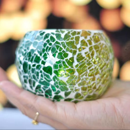 Luxury Silver Blue Beeswax Modern Votive Holders Elegant Lantern Jars for Home Party Festival Decorative Mosaic Work Highly
